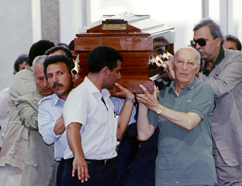 24 luglio 1992 Ai funerali di Paolo Borsellino presso la chiesa di Santa Maria di Marillac a Palermo. Gli unici rappresentanti delle Istituzioni ai quali la famiglia estende l´invito a partecipare alla funzione sono il Presidente della Repubblica Oscar Luigi Scalfaro, il ministro della giustizia Claudio Martelli, il capo della polizia Vincenzo Parisi ed il segretario del Msi Gianfranco Fini. Il funerale si chiude con la preghiera laica di Antonino Caponnetto: SEGUE