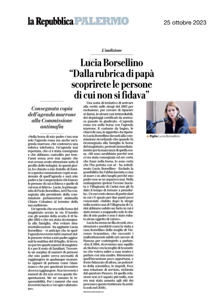 “Nella borsa di mio padre c’era non solo l’agenda rossa ma anche un’agenda marrone, che conteneva una rubrica telefonica.