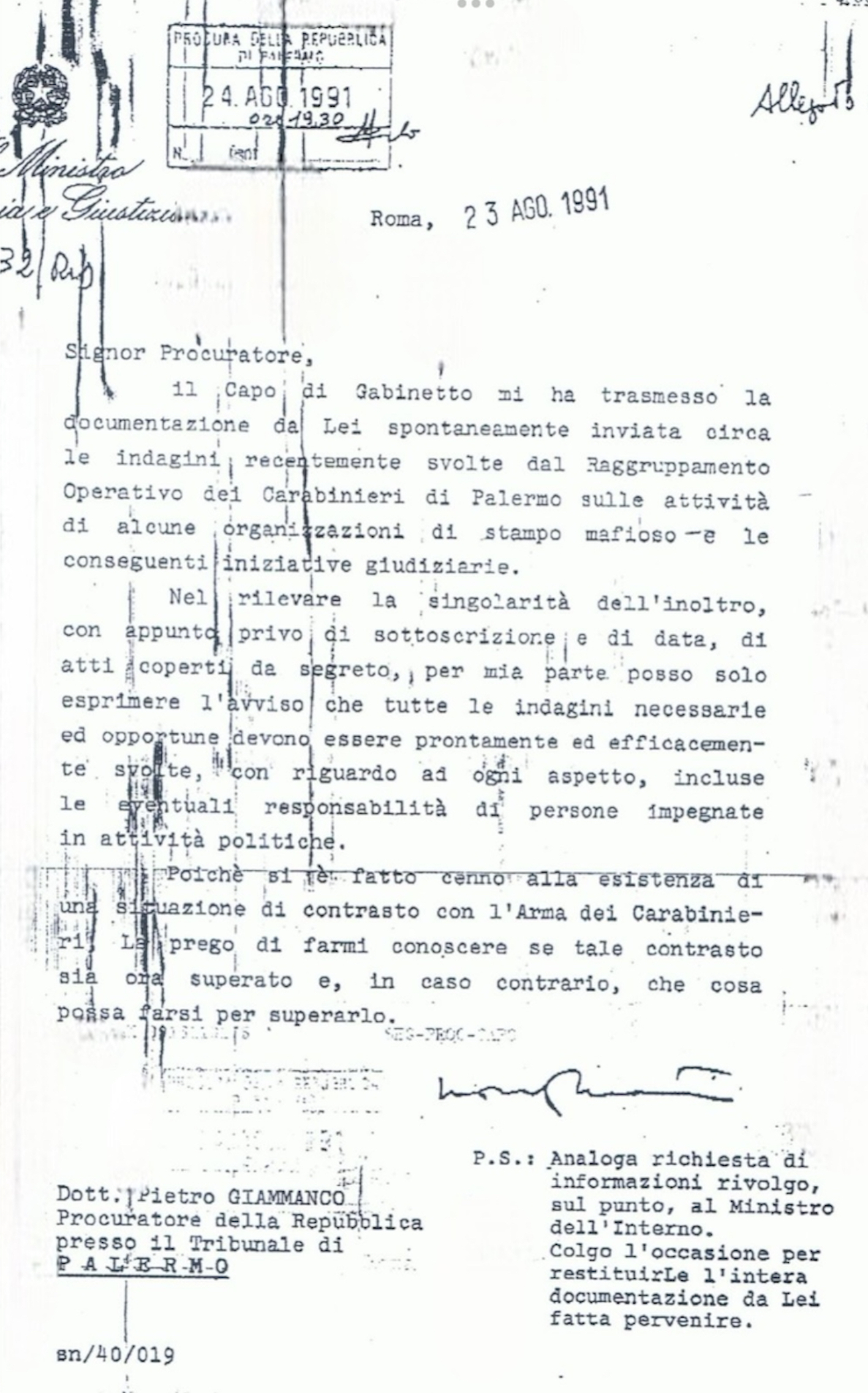 âSono ancora turbato oggi se penso a ciò che è stato omesso di fare da tutte le autoritĂ dello Stato in quel di Palermo nonostante le segnalazioni ricevute ripetutamente da me e dai miei uffici, in ordine a una particolare tutela e sorveglianza che doveva essere messa in atto a protezione del dottore Borsellinoâ. Martelli dice senza mezzi termini: âRitenevamo che Borsellino fosse certamente il nuovo bersaglio della mafia dopo lâassassinio di Falcone, che io non ho mai smesso di imputare allâottenimento delle sentenze di condanna a numerosi ergastoli per la la cupola mafiosa, ma anche allâimminenza molto probabile della sua nomina a procuratore nazionale antimafia nonostante lâopinione diversa del Csm che peraltro avevo respintoâ.