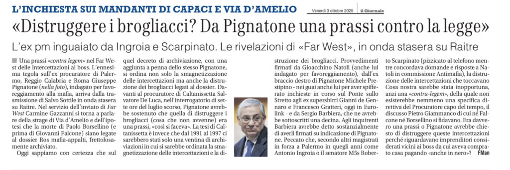 • Mafia e Appalti – Il Domani 3 ottobre 2025