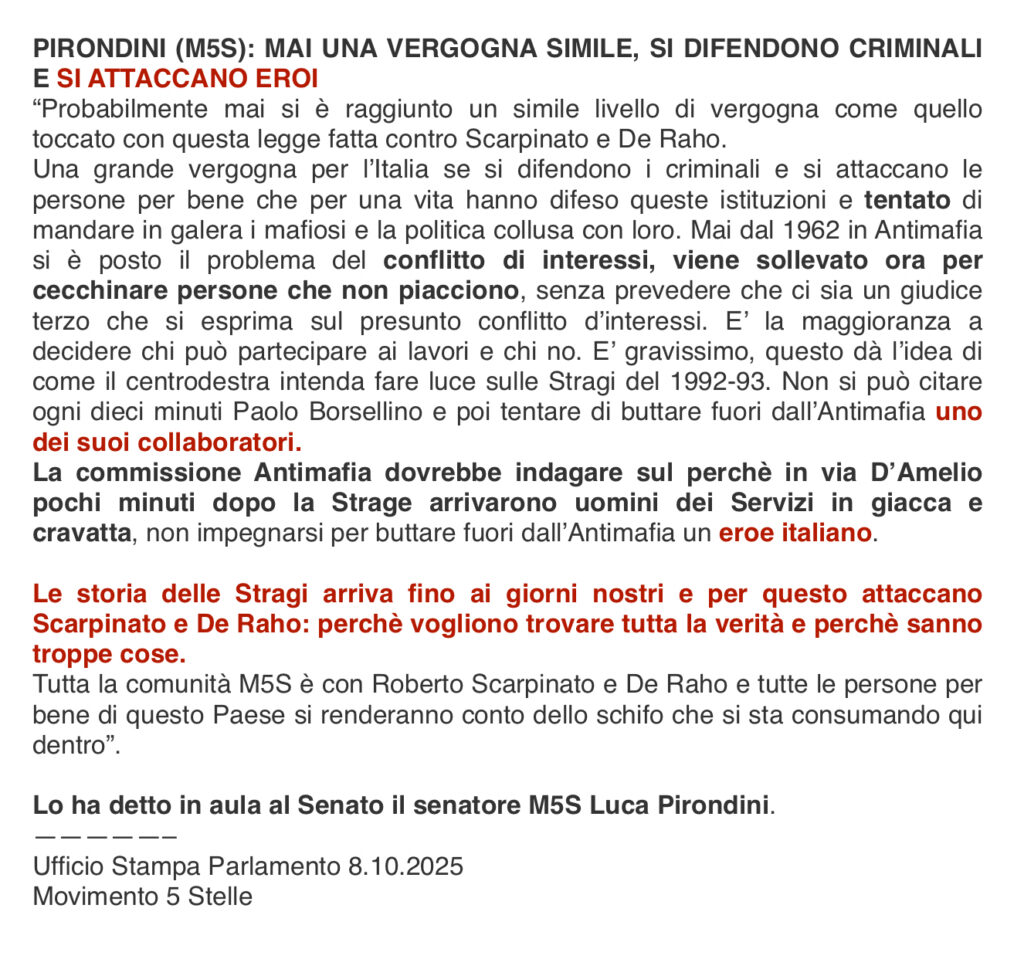 Non essendolo neppure io (è la mia tara ontologica), ci ho messo un po’ a capire cosa diavolo avevo appena letto. In breve, il Roberto Scarpinato collettivo protestava contro il ddl sul conflitto di interessi in Commissione antimafia, dove il senatore Roberto Scarpinato si trova a giudicare l’operato del magistrato Roberto Scarpinato rispetto al famoso dossier mafia-appalti. Incredibilmente, i senatori del Pd (che non sono Roberto Scarpinato, ma vorrebbero tanto esserlo) hanno applaudito. Peccato che gli altri, quelli privati del dono della robertoscarpinatitudine, non abbiano recitato una pièce rivale facendo il verso a uno slogan caro a Roberto Scarpinato (l’apocrifo sciasciano “Lo Stato non può processare sé stesso”). Avrebbero potuto esordire tutti così: “Lo Scarpinato non può giudicare sé stesso”. GUIDO VITIELLO