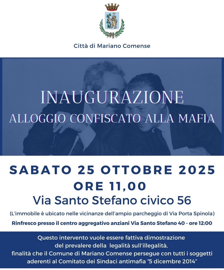 • MARIANO COMENSE – INAUGURAZIONE IMMOBILE CONFISCATO ALLA MAFIA