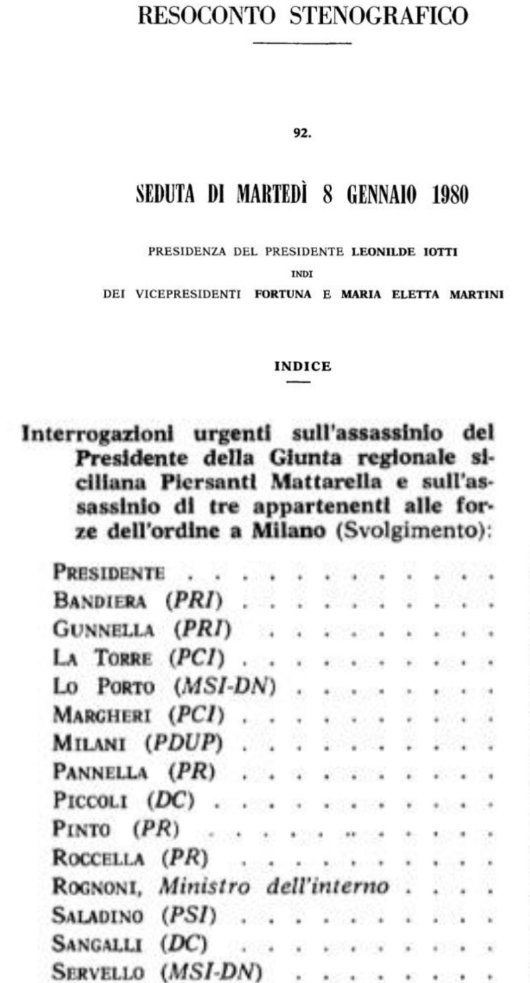 OMICIDIO MATTARELLA: DEL GUANTO SCOMPARSO PARLÒ ROGNONI ALLA CAMERA