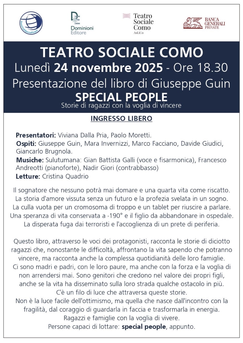 C’è un filo di luce che attraversa le pagine di Special People, l’ultimo libro di Giuseppe Guin. Non è la luce facile dell’ottimismo, ma quella che nasce dall’incontro con la fragilità e dal coraggio di guardarla negli occhi, per trasformarla in energia di vita.