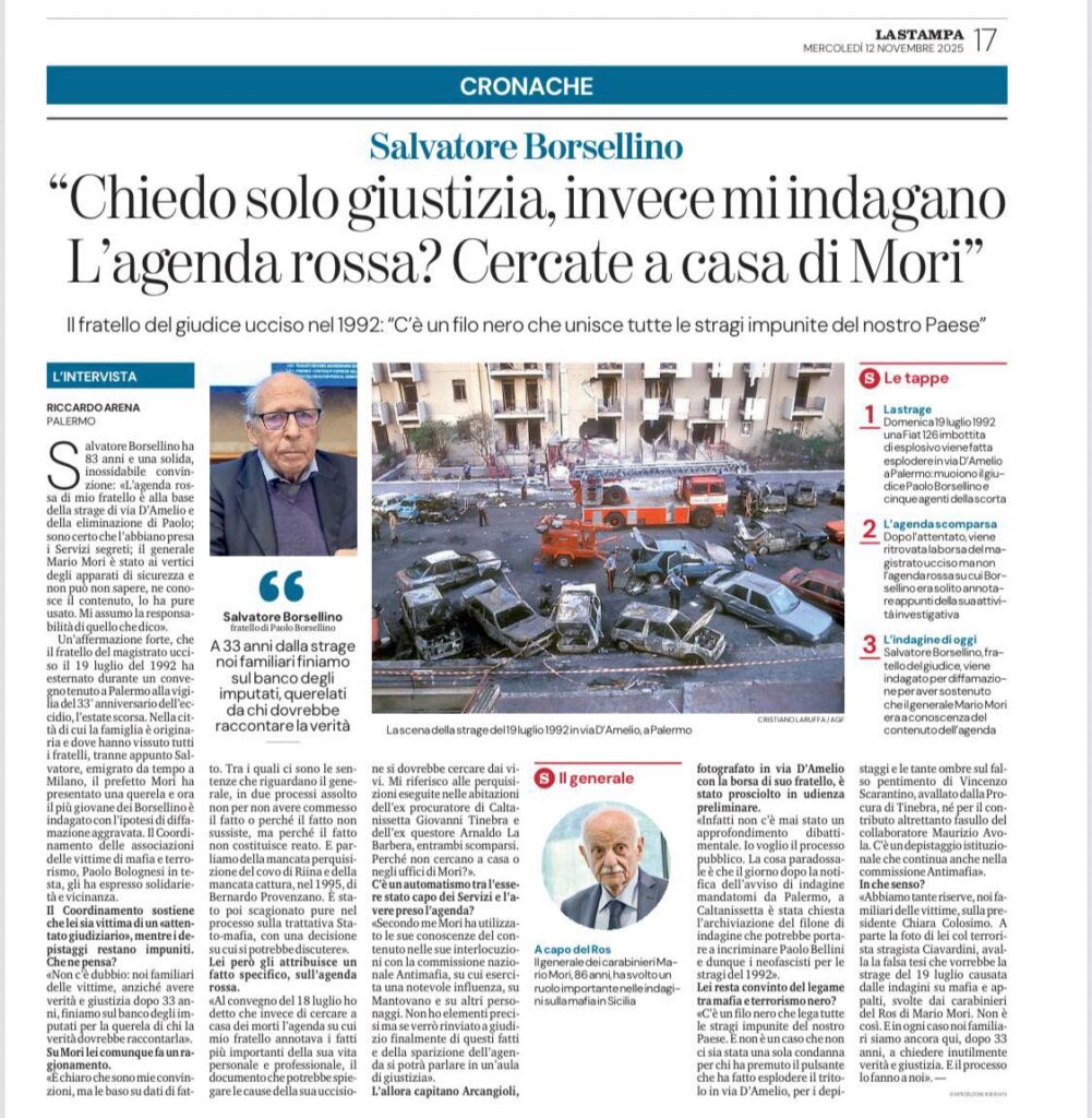 «Secondo me Mori ha utilizzato le sue conoscenze del contenuto nelle sue interlocuzioni con la commissione nazionale Antimafia, su cui esercita ta una notevole influenza, su Mantovano e su altri personaggi. Non ho elementi precisi ma se verrò rinviato a giudizio finalmente di questi fatti e della sparizione dell’agenda si potrà parlare in un’aula di giustizia»