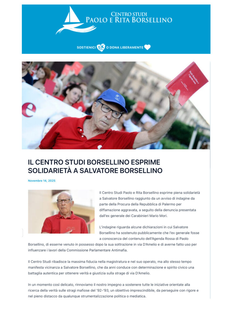 Solidarietà SALVATORE BORSELLINO dal Centro Studi Paolo e Rita Borsellino