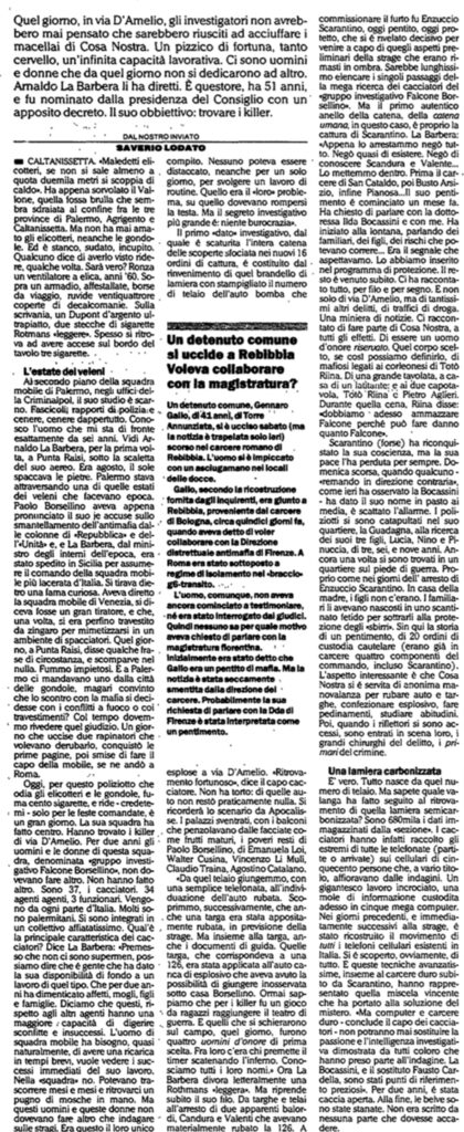 - BOLZONI: Non è la prima volta che alla vigilia di un’operazione (…) C’è sempre la fuga di notizie, (…) due volta nel caso Falcone, un volta nel caso Borsellino e Pietro Scotto e ultima, l’altro ieri (…) perché pare che qualcuno sia pure scappato.
