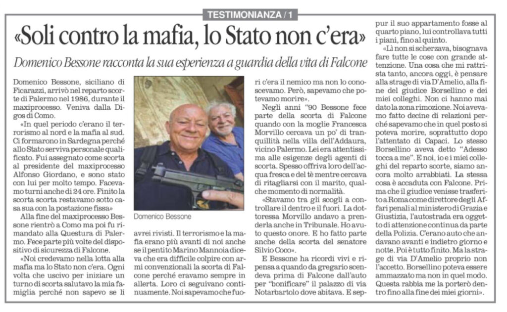 Consulente di regia insieme a Mirabella e Costanza sul set del film dedicato a Falcone e Morvillo