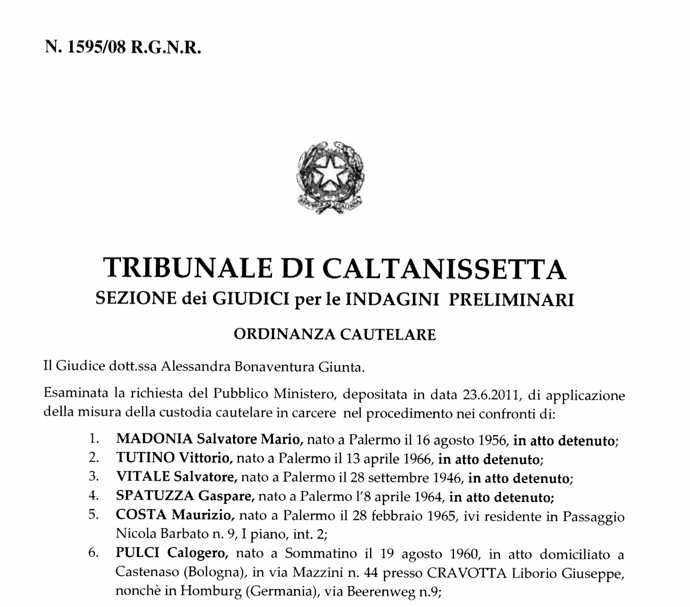 2011 – Strage Via D’Amelio – Ordinanza arresti