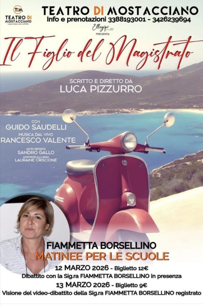 Mercoledì 14 gennaio il Teatro Comunale di Monte di Procida ospiterà Il Figlio del magistrato, spettacolo scritto e diretto da Luca Pizzurro, prodotto da Ellegipí Teatro 20 in collaborazione con La Fonderia del Teatro e proposto in una doppia proiezione: alle 11.00 per le scolaresche come intenso percorso di educazione alla legalità e alla memoria; aperto al pubblico alle 21.00. Un appuntamento di forte valore civile, arricchito dalla presenza di Fiammetta Borsellino, figlia del magistrato Paolo Borsellino, che al termine della rappresentazione parteciperà a un dibattito con gli studenti, trasformando il teatro in uno spazio vivo di confronto e consapevolezza.