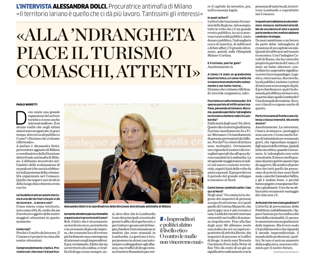 ALESSANDRA DOLCI: “La Lombardia colonizzata dalle mafie”. Una presenza inquietante nel comasco.