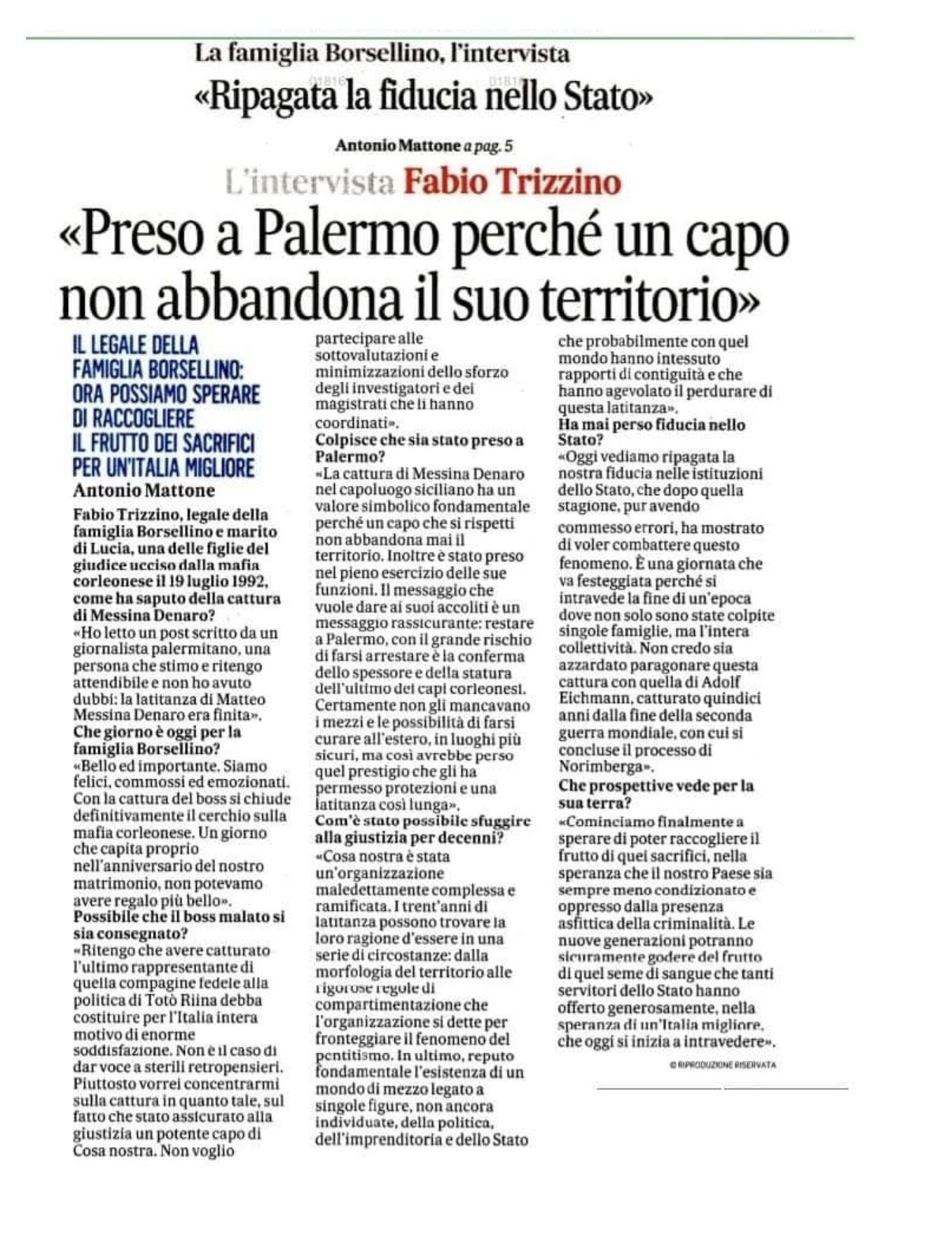 • 2023 IL MATTINO – Arresto Messina Denaro. Intervista avvocato Trizzino