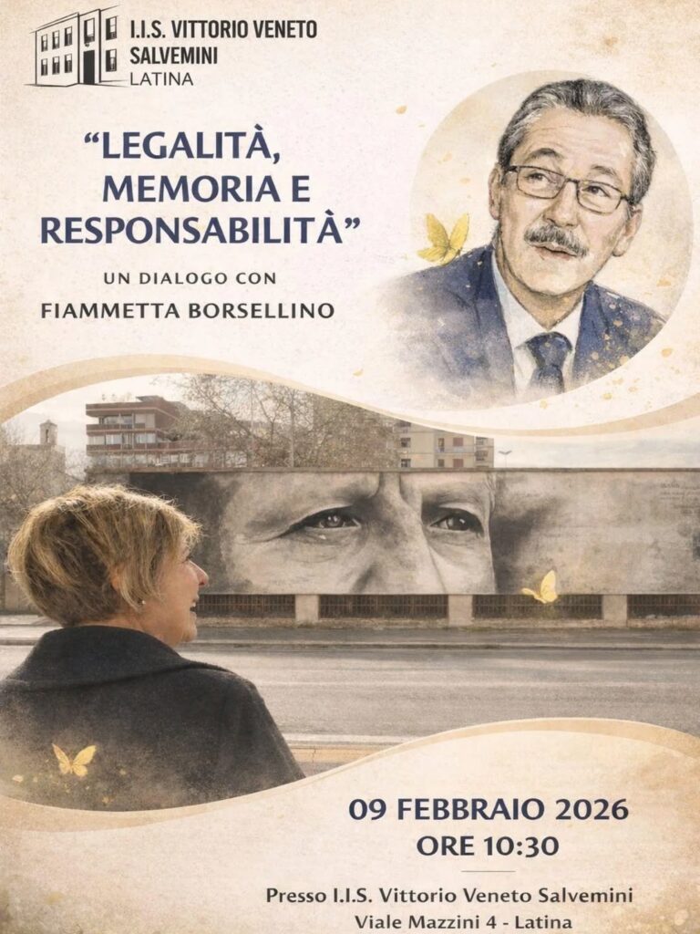Lunedì 9 febbraio, alle ore 10:30, gli studenti dell’IIS Vittorio Veneto Salvemini di Latina saranno protagonisti di un incontro speciale: avranno l’occasione di dialogare con la dottoressa Fiammetta Borsellino, figlia del giudice Paolo Borsellino, simbolo di coraggio, giustizia e impegno civile.