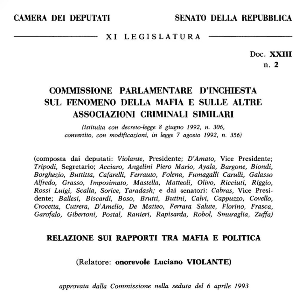 Per la prima volta, il 15 ottobre 1992, dopo alcuni mesi le stragi di Capaci e Via D’Amelio, la  Commissione parlamentare antimafia decise di dedicare un settore della propria attività al rapporto tra mafia e politica