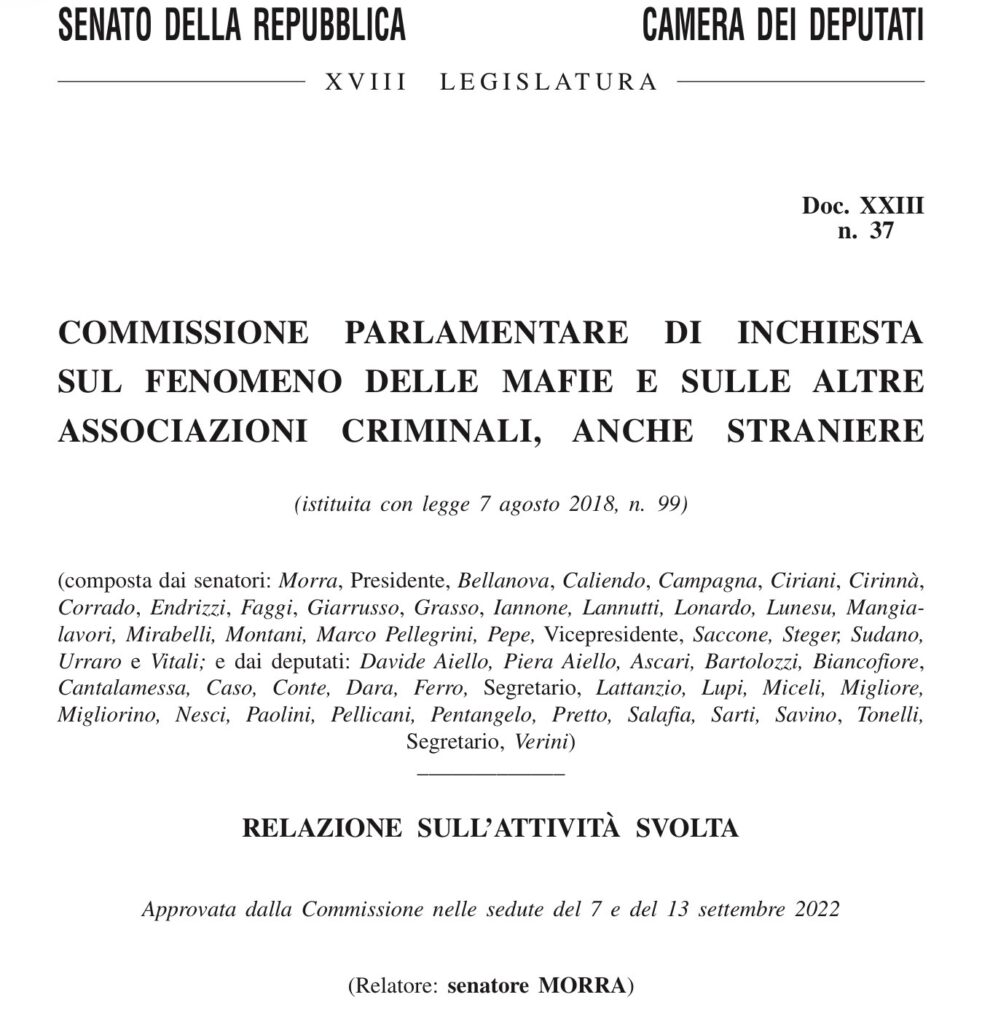 • 13.9.2022 đźź§ Rel. MORRA – Presidente Commissione Parlamentare Antimafia