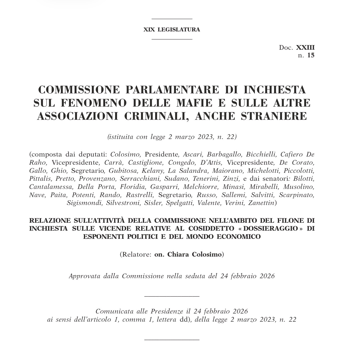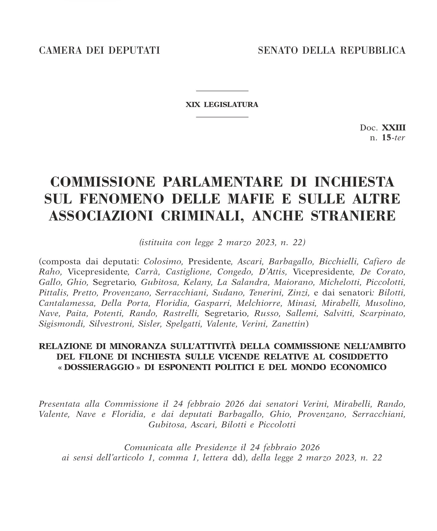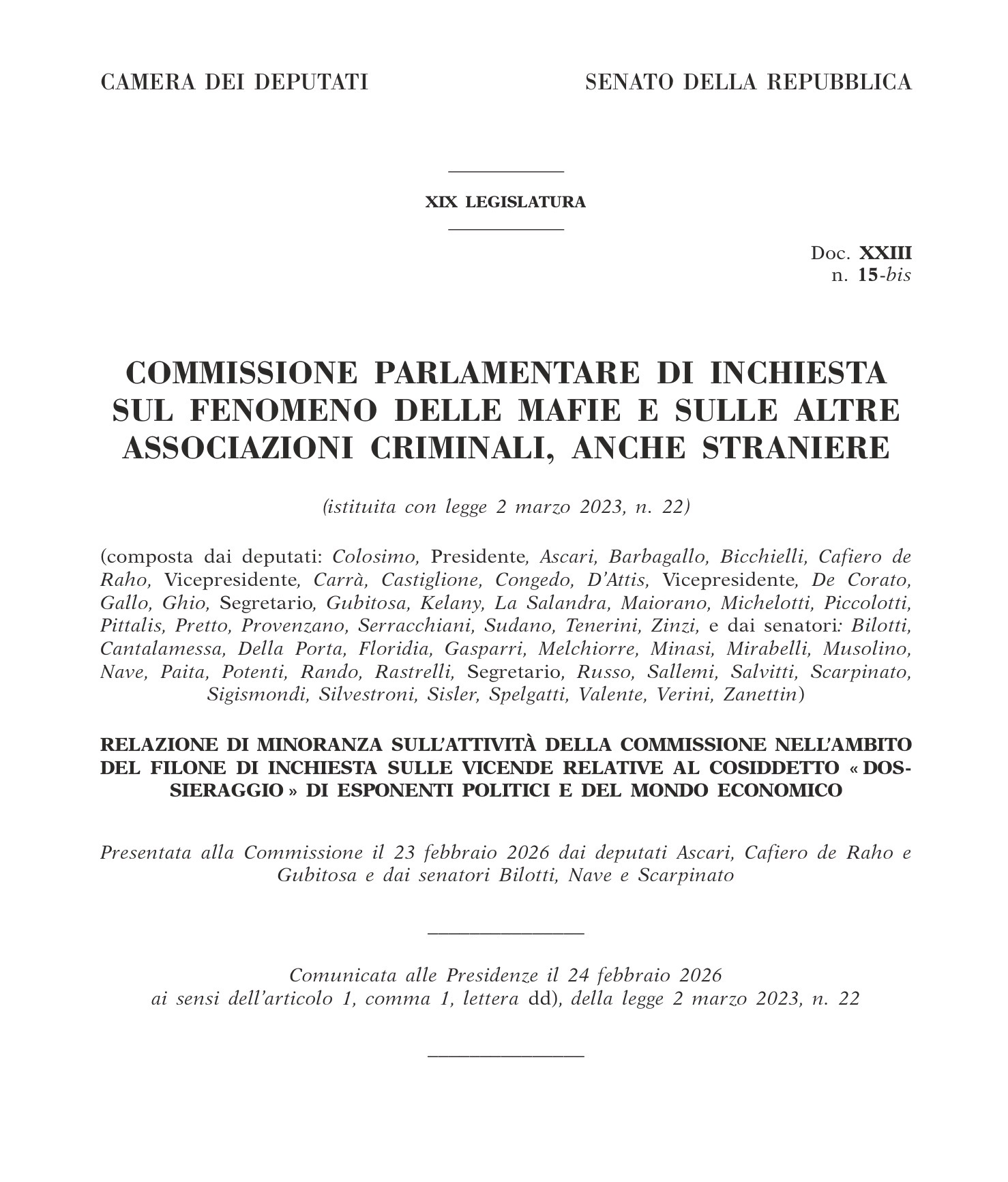 COMMISSIONE ANTIMAFIA e conflitti di interesse 🟥 Relazioni maggioranza e minoranza