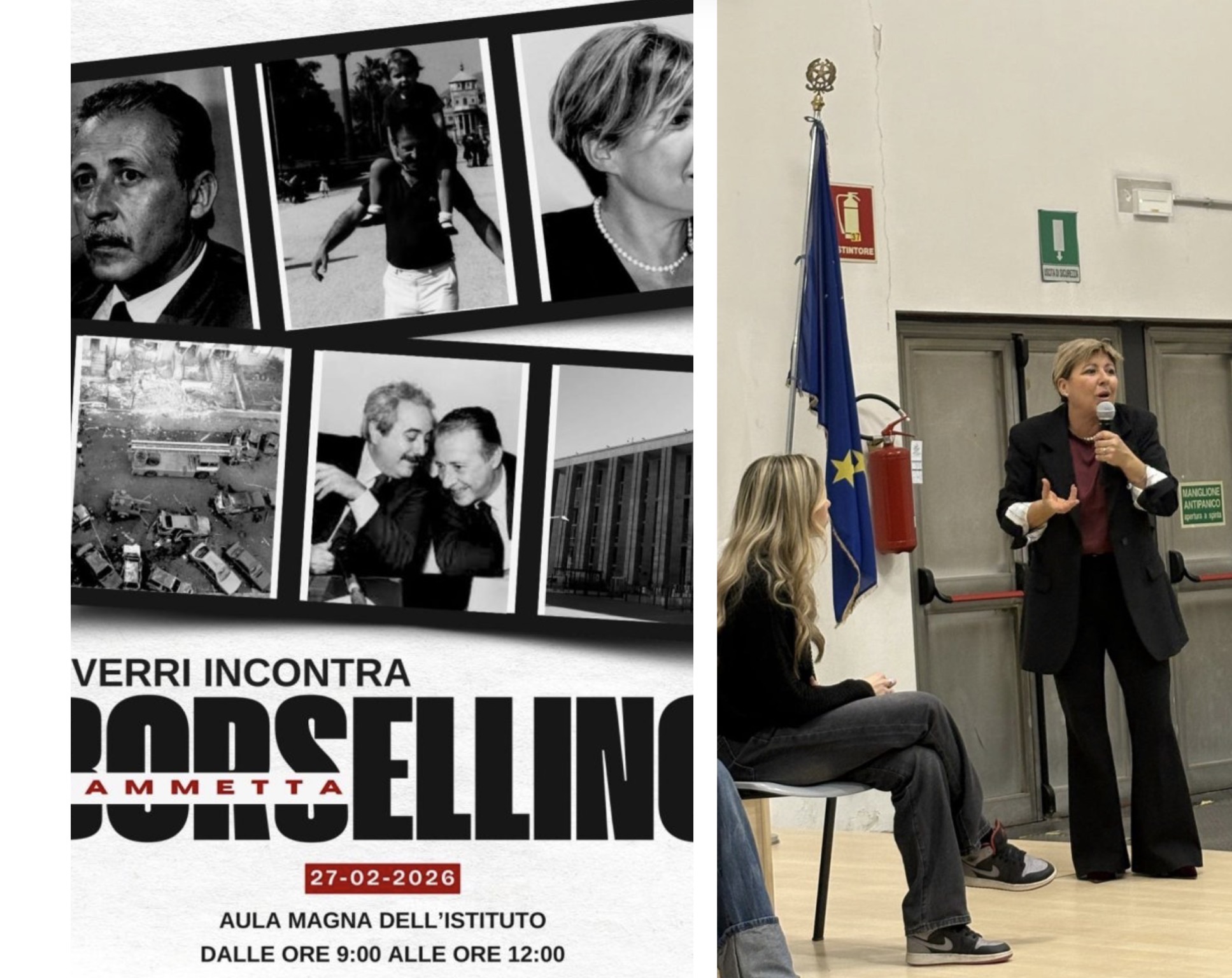 vivere non riguarda solo il passato, ma il futuro che insieme scegliamo di costruire. Accogliere Fiammetta Borsellino presso il nostro istituto è per noi un onore che emoziona e responsabilizza», ha detto la dirigente. «La sua presenza non è solo quella di una figlia che custodisce la memoria del padre, ma di una donna che ha trasformato il dolore in impegno, il silenzio in parola, la ferita in responsabilità civile. È la testimonianza che anche dalla tragedia può nascere una forza capace di illuminare – ha proseguito Cesarano – Nel suo nome risuona, potente e indelebile, quello di Paolo Borsellino: magistrato, servitore dello Stato, uomo giusto. Un uomo che ha scelto di non piegarsi. Un uomo che sapeva di avere paura “perché il coraggio non è assenza di paura”, ma ha deciso che la paura non avrebbe avuto l’ultima parola».