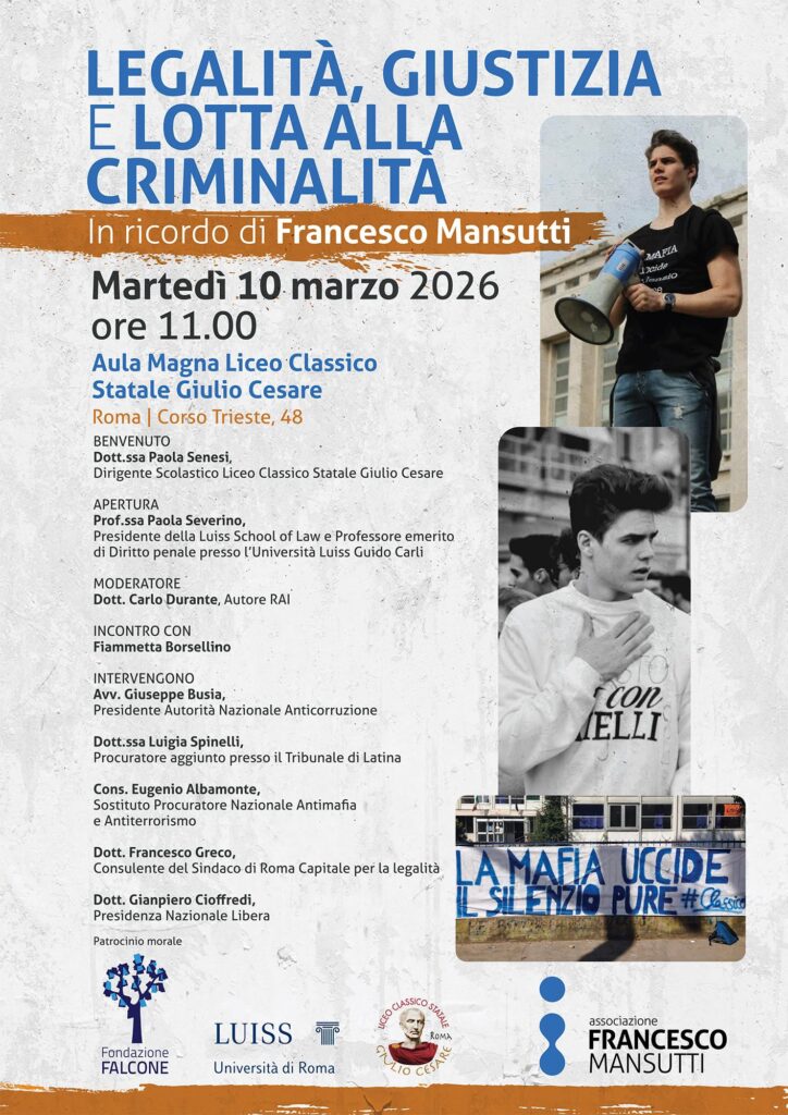 Si terrà martedì 10 marzo 2026, alle ore 11.00, presso l’Aula Magna del Liceo Classico Statale Giulio Cesare (Corso Trieste, 48), la terza edizione del convegno “Legalità, giustizia e lotta alla criminalità”, promosso dall’Associazione Francesco Mansutti ETS.