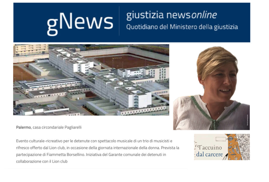 “Lunedi 9 marzo al reparto femminile della Casa Circondariale del Pagliarelli  è  previsto un incontro promosso  dal Garante delle persone private della libertà, di Palermo, Pino Apprendi e organizzato in collaborazione con fra’ Loris, cappellano del Pagliarelli che con i Lions Leoni offriranno un momento conviviale”