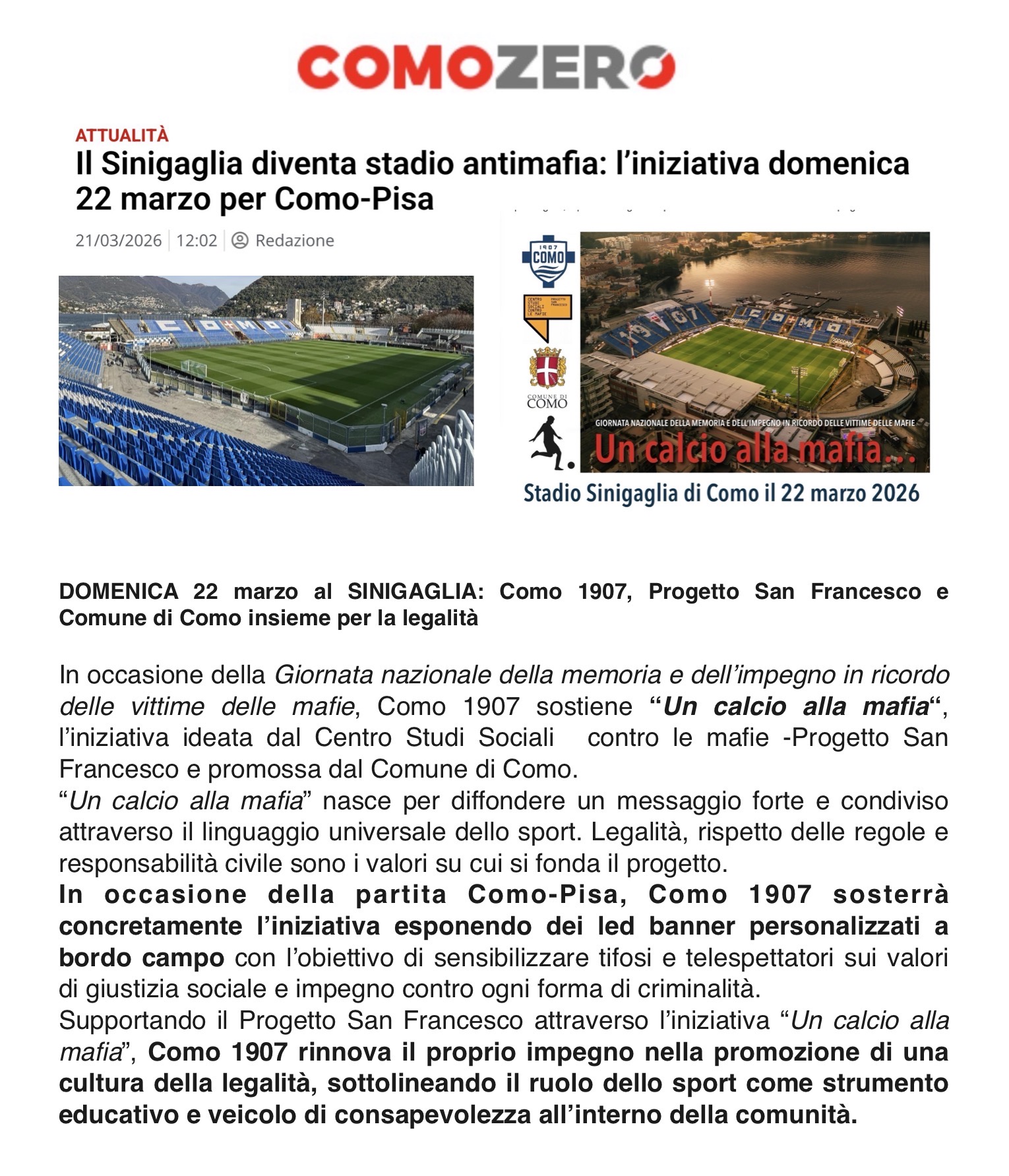 COMO ZERO – UN CALCIO ALLA MAFIA